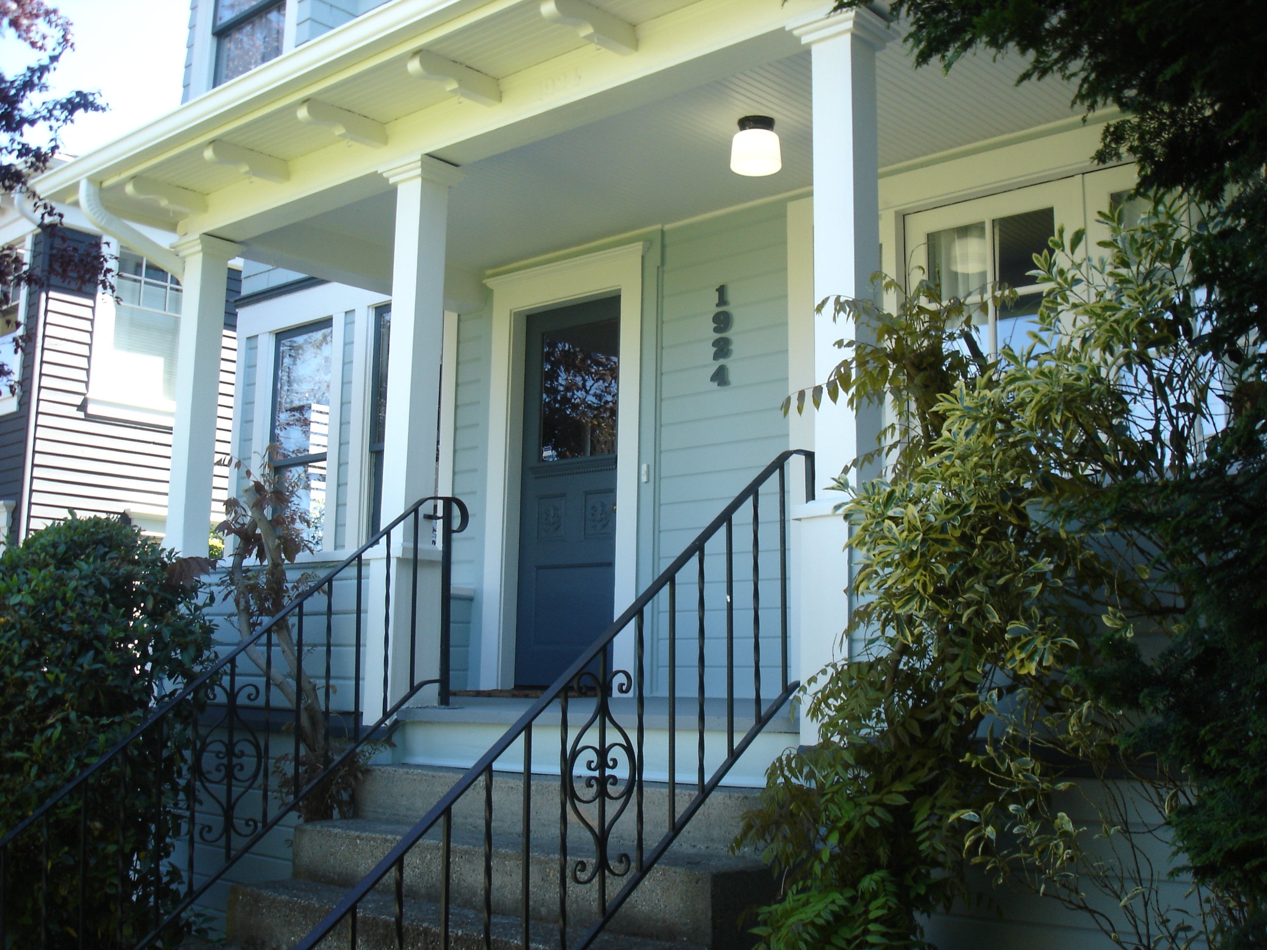 This large historic home is in Seattle’s historic Volunteer Park neighborhood and was in need of a major exterior renovation including lead paint remediation. We completed extensive repairs to the original siding, trim, windowsills, and much more. The homeowners went with light blue that gave this beautiful home new life. It turned out stunning!